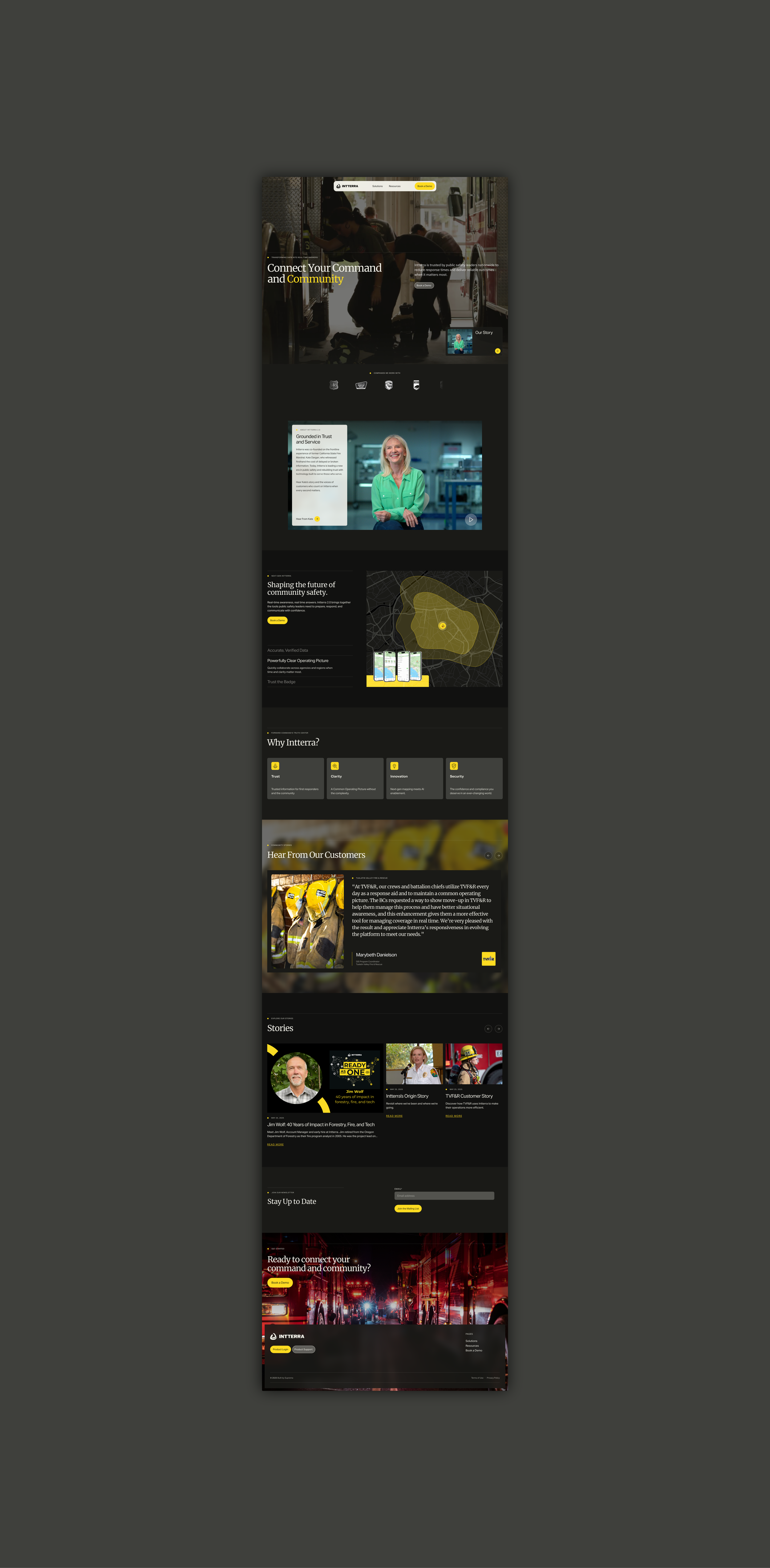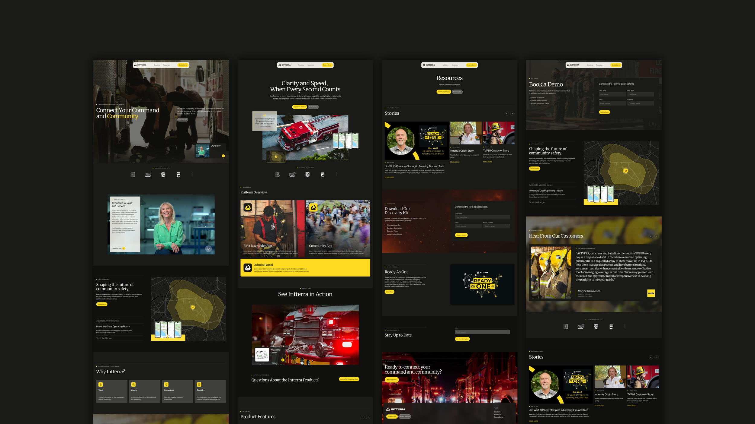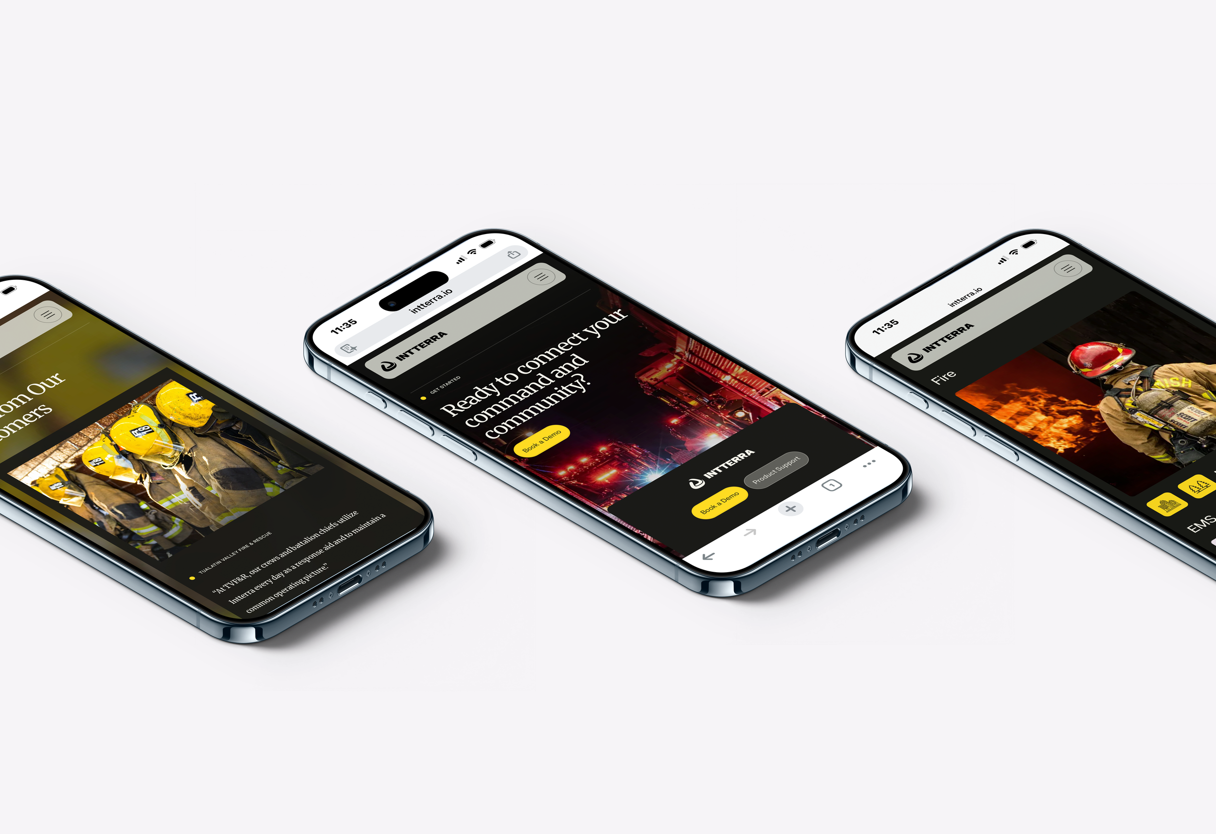 The refresh came alongside new management, with a need to move beyond an existing brand that didn’t fully reflect the platform’s sophistication. Building from the existing logo and signature yellow, the work focused on redefining the visual direction into something more cohesive, modern, and product-aligned. Guided by early references from the client, the result is a structured identity that communicates precision, urgency, and trust, reinforcing Intterra’s role as a critical decision-making tool in high-stakes environments.